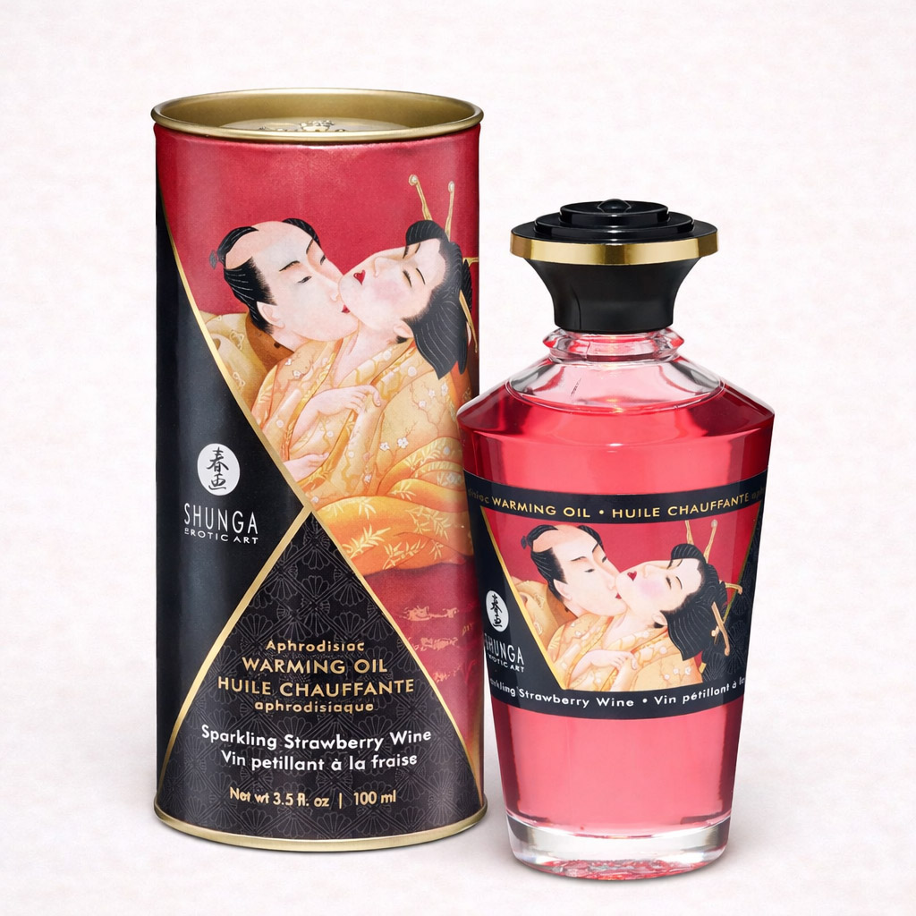 L’huile chauffante aphrodisiaque de Shunga est une invitation à ralentir, à se reconnecter et à explorer le plaisir du toucher dans une atmosphère sensuelle et gourmande. Conçue pour le massage corporel et intime, elle diffuse une chaleur progressive au contact de la peau, éveillant les sens et intensifiant les sensations.