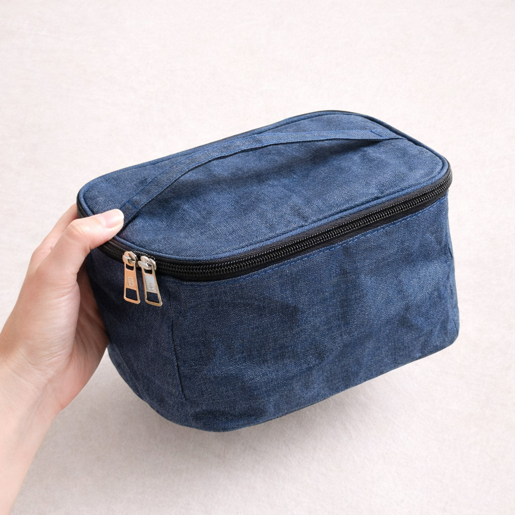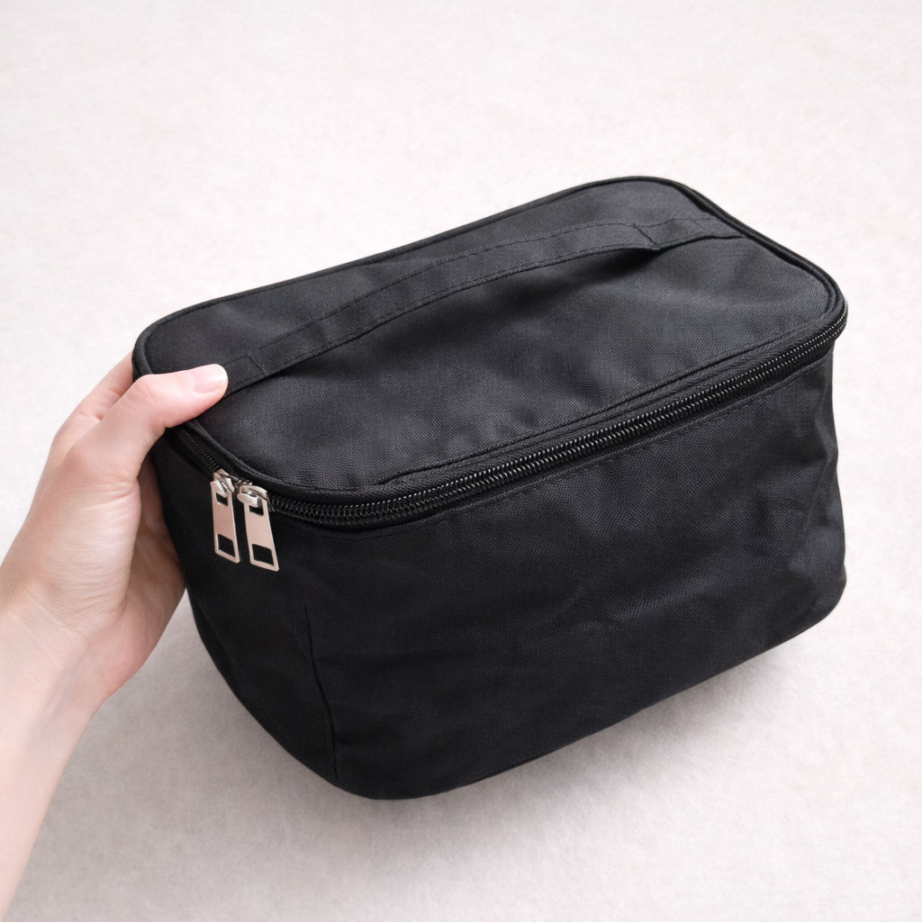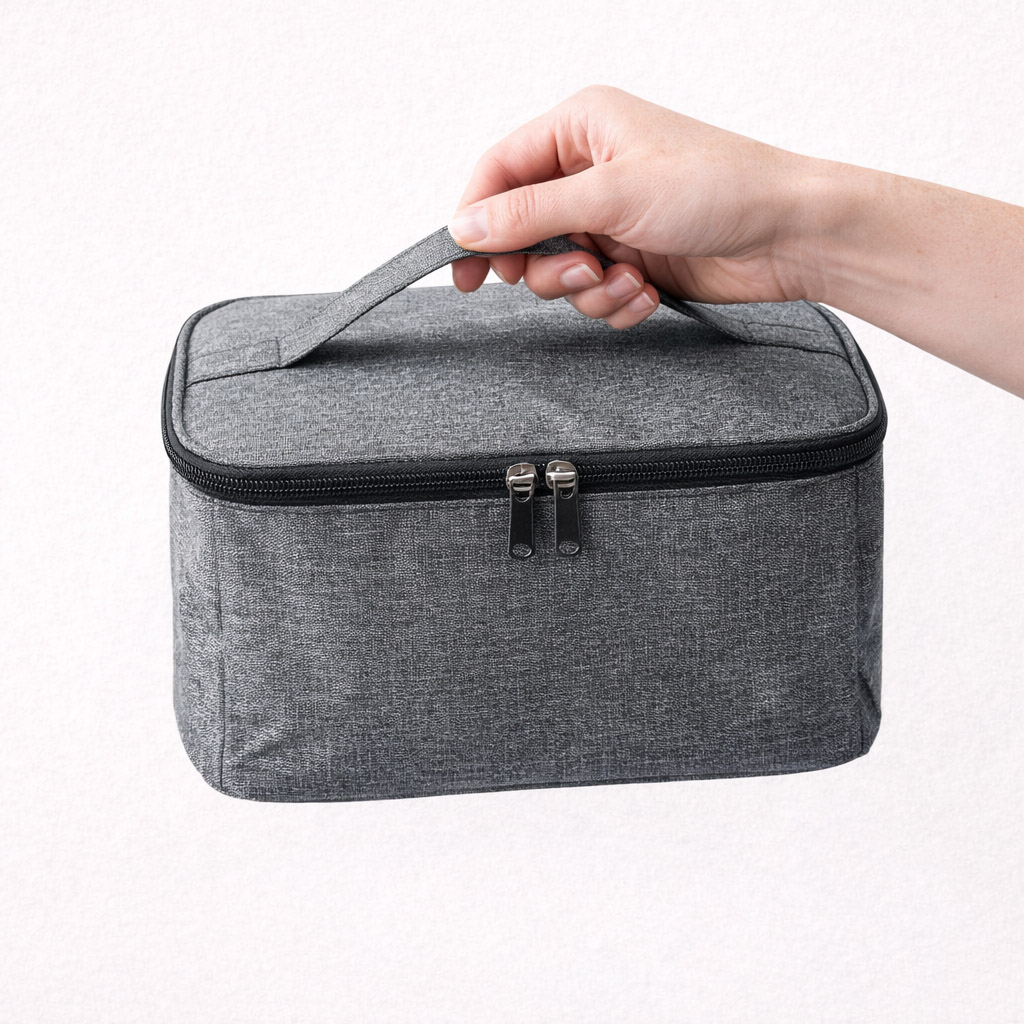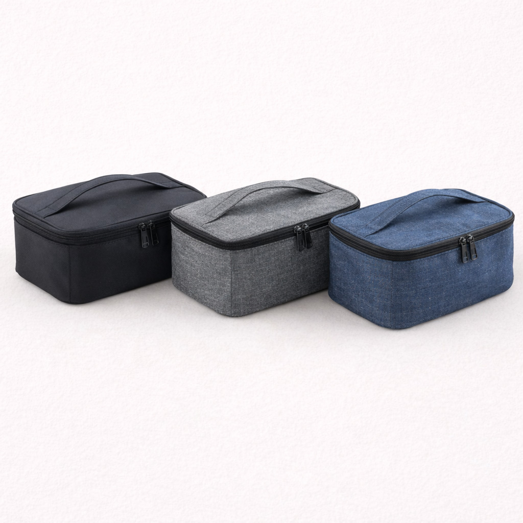 Son design sobre et discret, décliné en gris, noir ou bleu foncé, lui permet de se fondre naturellement dans une chambre, une salle de bain ou une valise, sans attirer l’attention. Le motif en relief apporte une touche moderne tout en conservant une apparence neutre.